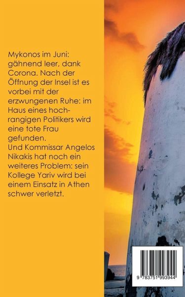 Mykonos im Juni: gähnend leer, dank Corona. Nach der Öffnung der Insel ist es vorbei mit der erzwungenen Ruhe: im Haus eines hoch-rangigen Politikers wird eine tote Frau gefunden.Und Kommissar Angelos Nikakis hat noch ein weiteres Problem: sein Kollege Yariv wird bei einem Einsatz in Athen schwer verletzt.