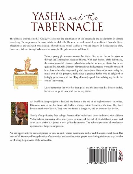 The intricate instructions that God gave Moses for the construction of the Tabernacle and its elements are almost stupefying. The scope covers the most infinitesimal details. The structure and sacred elements birthed from the divine blueprint are exquisite and breathtaking. The tabernacle reveals itself as a type and shadow of the redemptive plan, that a merciful and loving God created to reconcile His prize creation to Himself. Yasha, a young girl sets out to meet her Abba. She seeks Him as she sojourns through the Tabernacle of Moses and David. With each element of the Tabernacle, she meets a colorful character who either assist her or tries to hinder her in her quest to find her Abba (Father). Her tenacity and diligence are eventually rewarded in a climatic, breathtaking meeting with her majestic Abba. After overcoming the initial awe of His presence, Yasha finds a gracious Father who is delighted to lovingly spend time with her. They ultimately spend time walking together in the cool of the evening. Let us remember the price has been paid, and the invitation has been extended, for us also to spend time with our loving, Abba. Art Markham accepted Jesus as his Lord and Savior at the end of his sophomore year in college. His senior year he met his future wife Debbra, though neither knew it at the time. They have been married over 42 years. They have two fantastic daughters, and an awesome son-in-law. Shortly after graduating from college, Art started his professional career in finance, with a Silicon Valley defense contractor. After nine years, he answered the call of his childhood dream and adult secret desire. Art joined a local police department. The police department allowed many opportunities for personal growth. Art had opportunity in one assignment to write an anti-tobacco curriculum, author and illustrate a work book. But most of all Art enjoyed being the voice of consolation and comfort, when people were having their worst day. He also loved being the protector of the vulnerable.