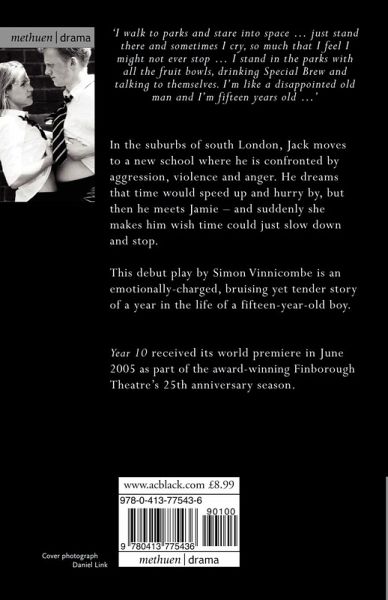 Gripping drama of teenage struggle by talented new writer 'I walk to parks and stare into space...just stand there and sometimes I cry, so much that I feel I might not ever stop . . . I stand in the parks with all the fruit bowls, drinking Special Brew and talking to themselves, I'm like a disappointed old man and I'm fifteen years old...' In the suburbs of south London, Jack moves to a new school where he is confronted by aggression, violence and anger. He dreams that time would speed up and hurry by, but then he meets Jamie. And suddenly she makes him wish time could just slow down and stop. An emotionally-charged, bruising yet tender story of the journey of a year in the life of a fifteen year old boy. 'captures all the frustration, anger and fear of the introspective, put-upon teenager, and the helplessness of parents and teachers . . . I believed every word. Which is truly terrifying' Lyn Gardner, Guardian