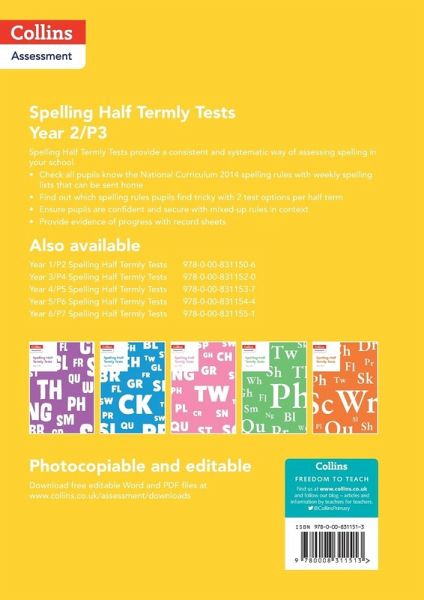 Ensure Year 2/P3 children know the National Curriculum 2014 spelling rules and words with half termly spelling tests. With two test options per half term and record sheets, you can quickly find out which spelling rules and words children find tricky and focus on those. You can use the spelling lists for weekly homework.