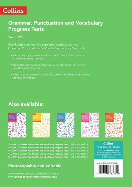 Ensure Year 5/P6 children know the National Curriculum 2014 requirements with half termly grammar, punctuation and vocabulary progress tests. With six tests per year and a photocopiable record sheet, you can quickly find out which rules children find tricky and focus on those.