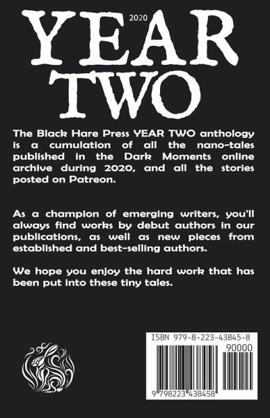 The Black Hare Press YEAR TWO anthology is a cumulation of all the nano-tales published in the Dark Moments online archive during 2020, as well as the short stories from the year's Patreon content. As a champion of emerging writers, you'll always find works by debut authors in our publications, as well new pieces from established and best-selling authors. We hope you enjoy the hard work that has been put into these tiny tales.