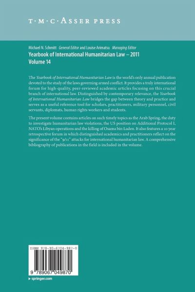 The Yearbook of International Humanitarian Law is the world's only annual publication devoted to the study of the laws governing armed conflict. It provides a truly international forum for high-quality, peer-reviewed academic articles focusing on this crucial branch of international law. Distinguished by contemporary relevance, the Yearbook of International Humanitarian Law bridges the gap between theory and practice and serves as a useful reference tool for scholars, practitioners, military personnel, civil servants, diplomats, human rights workers and students.