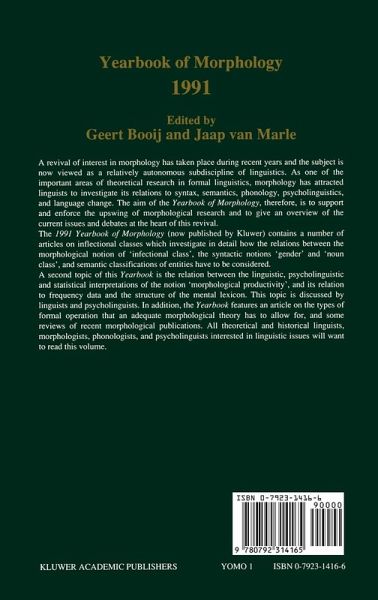 Theme 'Morphological Classes' Guest Editor: Mark Aronoff.- Syntactically Arbitrary Inflectional Morphology.- Noun Classes in Arapesh.- The Latvian Declension.- Formal Properties of the Conjugations in Modern Aramaic.- The Form Classes of Spanish Substantives.- Morphological Classes and Grammatical Organization.- Theme 'Productivity'.- Quantitative Aspects of Morphological Productivity.- The Relationship between Morphological Productivity and Frequency: A Comment on Baayen's Performance-Oriented Conception of Morphological Productivity.- Constraining Psycholinguistic Models of Morphological Processing and Representation: The Role of Productivity.- Scalar Productivity and -lily Adverbs.- Other Articles.- Morphemic Circumscription.- On the Theoretical Status of Position Class Restrictions on Inflectional Affixes.- Book Reviews.- Renato Oniga,I composti nominali latini: una morfologia generativa.- Yakov Malkiel, Diachronic Problems in Phonosymbolism. Edita and Inedita, 1979-1988.- Book Notices.- Wolfgang U. Dressler, Hans C. Luschützky, Oskar E. Pfeiffer, and John R. Rennison (eds.), Contemporary Morphology.- Soledad Varela Ortega, Fundamentos de Morfología.- Journal of the English Linguistic Society, Vol. 7 (1990).- Publications Received.- Notes To Contributors.
