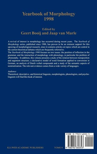 The Yearbook of Morphology 1998 focuses on two issues: the position of inflection in the grammar, and the interaction of morphology with phonology, in particular the problem of allomorphy. In addition, this volume presents a study of the relation between transposition and argument structure, a declarative model of word formation applied to conversion in German, an analysis of Dutch verbal compounds and a study of the semantic aspects of nominalization. The relevant evidence comes from a wide variety of languages.