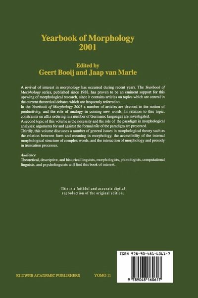 A revival of interest in morphology has occurred during recent years. The Yearbook of Morphology series, published since 1988, has proven to be an eminent support for this upswing of morphological research, since it contains articles on topics which are central in the current theoretical debates which are frequently referred to.