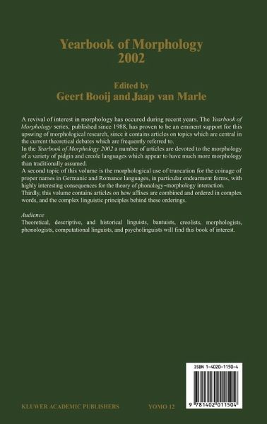 A revival of interest in morphology has occurred during recent years. The Yearbook of Morphology series, published since 1988, has proven to be an eminent support for this upswing of morphological research, since it contains articles on topics which are central in the current theoretical debates which are frequently referred to. In the Yearbook of Morphology 2002 a number of articles is devoted to the morphology of a variety of pidgin and creole languages which appear to have much more morphology than traditionally assumed. A second topic of this volume is the morphological use of truncation…mehr