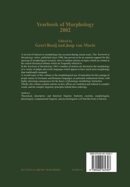 A revival of interest in morphology has occurred during recent years. The Yearbook of Morphology series, published since 1988, has proven to be an eminent support for this upswing of morphological research, since it contains articles on topics which are central in the current theoretical debates which are frequently referred to.