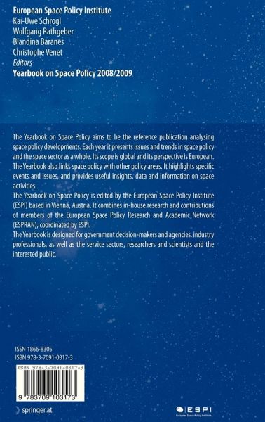 The Yearbook on Space Policy aims to be the reference publication analysingspace policy developments. Each year it presents issues and trends in space policyand the space sector as a whole. Its scope is global and its perspective is European.The Yearbook also links space policy with other policy areas. It highlights specificevents and issues, and provides useful insights, data and information on spaceactivities.The Yearbook on Space Policy is edited by the European Space Policy Institute(ESPI) based in Vienna, Austria. It combines in-house research and contributionsof members of the European Space Policy Research and Academic Network(ESPRAN), coordinated by ESPI.The Yearbook is designed for government decision-makers and agencies, industryprofessionals, as well as the service sectors, researchers and scientists and theinterested public.