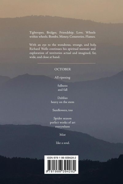 Tightropes. Bridges. Friendship. Love. Wheels within wheels. Bombs. Cemeteries. Flames. With an eye to the wondrous, strange, and holy Richard Wells continues his exploration of territories actual and imagined, far, wide, and close at hand.