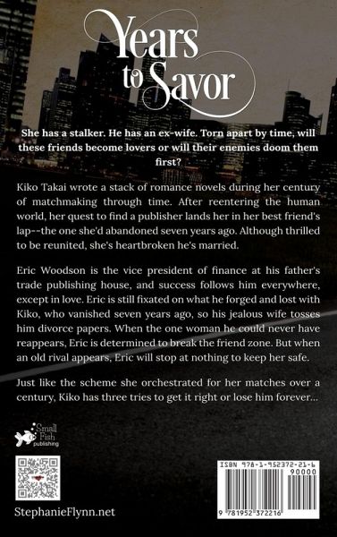 ***SERIES COMPLETE*** She has a stalker. He has an ex-wife. Torn apart by time, will the friends rekindle their relationship, or will their enemies doom them first? Kiko Takai wrote a stack of romance novels during her century of matchmaking through time. After reentering the human world, her quest to find a publisher lands her in her best friend's lap--the one she'd abandoned seven years ago. Although thrilled to be reunited, she's heartbroken he's married. Eric Woodson is the vice president of finance at his father's trade publishing house and success follows him everywhere, except in love. Eric is still fixated on what he forged and lost with Kiko, who vanished seven years ago, so his jealous wife tosses him divorce papers. When the one woman he could never have reappears, Eric is determined to break the friend zone. But when they bump into the man who killed his best friend-her husband, Eric will stop at nothing to keep her safe. Just like the scheme she orchestrated for her matches over a century, Kiko has three tries to get it right or lose him forever... If you love sizzling romance, edge-of-your-seat action, time travel, swoon-worthy heroes, and sassy ladies in a small town setting, you'll love Stephanie Flynn's dramatic historical adventure books. Each is a standalone with guaranteed HEA, but an overarching narrative. Best if read in order.
