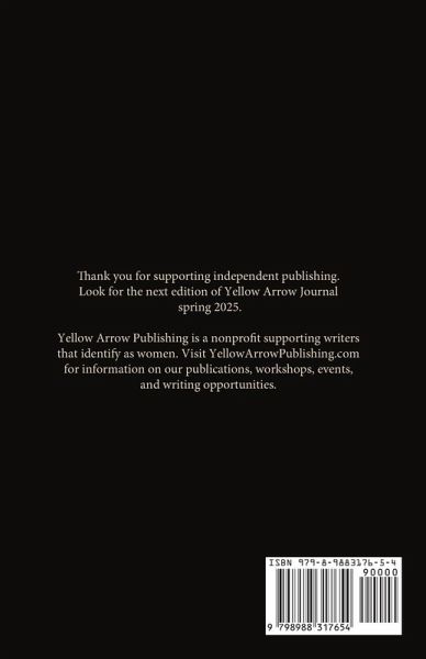 Yellow Arrow Journal is a biannual literary journal of creative nonfiction, poetry, and cover art by writers and artists who identify as women. The theme for this issue is kitalo and explores griefulness, the intersection of grief and gratitude.