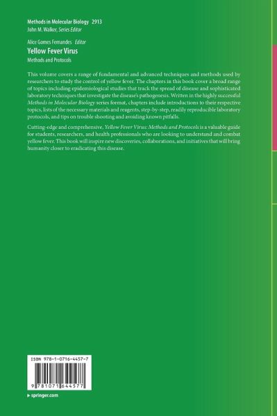Cutting-edge and comprehensive, Yellow Fever Virus: Methods and Protocols is a valuable guide for students, researchers, and health professionals who are looking to understand and combat yellow fever. This book will inspire new discoveries, collaborations, and initiatives that will bring humanity closer to eradicating this disease.