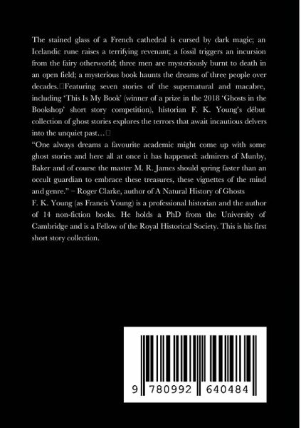 The stained glass of a French cathedral is cursed by dark magic; an Icelandic rune raises a terrifying revenant; a fossil triggers an incursion from the fairy otherworld; three men are mysteriously burnt to death in an open field; a mysterious book haunts the dreams of three people over decades. Featuring seven stories of the supernatural and macabre, including 'This Is My Book' (winner of a prize in the 2018 'Ghosts in the Bookshop' short story competition), historian F. K. Young's début collection of ghost stories explores the terrors that await incautious delvers into the unquiet past...