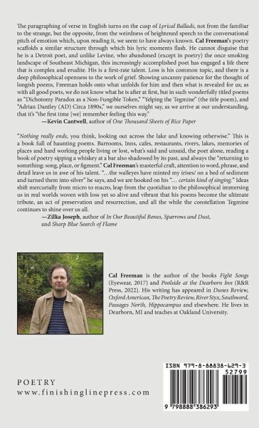Cal Freeman's chapbook, Yelping the Tegmine, offers a series of elliptical Yelp reviews for real, imagined, and shuttered bars and restaurants throughout the Great Lakes region. Within this, Freeman covers topics like labor history, freshwater ecology, addiction, and mental illness. Several of these poems have appeared in leading American and international journals including Oxford American.