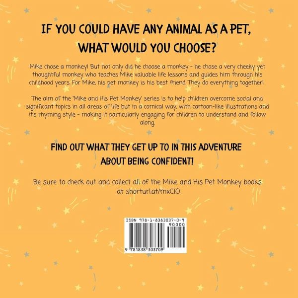 If you could choose any animal as a pet, which animal would you choose? Mike chose a monkey! But not only did he choose a monkey - he chose a very cheeky yet thoughtful monkey who teaches Mike valuable life lessons and guides him through his childhood years. For Mike, his pet monkey is his best friend. They do everything together! Yes, I Can!: A Kids Book About Confidence is a funny and cute kids story to teach children that being confident is good and that with confidence, they can overcome many difficult situations that a child might face in their early life. Understanding our emotions can be difficult for everyone, especially for kids! Lately, Mike has been feeling shy and doesn't believe he can do certain tasks, but, luckily for him, his pet monkey, Monty, helps him to understand that believing in yourself and having confidence is good! The 'Mike and His Pet Monkey' book series is funny, educational, and easy to read for youngsters, specifically for ages 4-8 but can be enjoyed by anyone at any age. The aim of the 'Mike and His Pet Monkey' series is to help children overcome social and significant topics in all areas of life but in a comical way, with cartoon-like illustrations and it's rhyming style - making it particularly engaging for children to understand and follow along. Find out what they get up to in this adventure about confidence! Be sure to check out and collect all of the Mike and His Pet Monkey books!