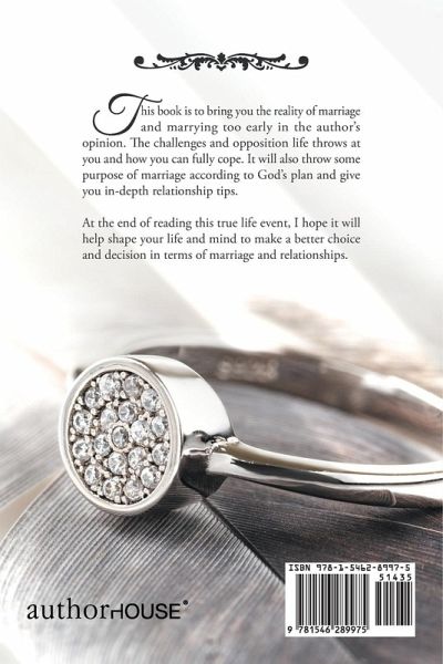 This book is to bring you the reality of marriage and marrying too early in the authors opinion. The challenges and opposition life throws at you and how you can fully cope. It will also throw some purpose of marriage according to Gods plan and give you in-depth relationship tips. At the end of reading this true life event, I hope it will help shape your life and mind to make a better choice and decision in terms of marriage and relationships.