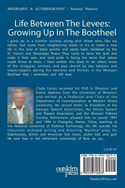 The Great War was over. Land left as swamps by the New Madrid Earthquake had been drained. Men, some of them veterans of World War I, searching for work came into this newly-opened territory in order to cut timber, clear new ground and create productive farms out of this once-sunken soil. Most, like D.O. Faries, who migrated from Illinois, leased acreage or sharecropped -- planting, chopping, and picking cotton for a percentage of the profit due absent landlords. In this frontier society, food was often scarce and floods were frequent, but there was also time, in the midst of tragedy, for laughter and love. Meet the characters populating the Bootheel between World Wars I and II. Join the Faries family and follow their lives as seen through the eyes of the youngest child in the household. Be there for his birth, the loss of his mother, his first date, and the separation of the family during World War II. This is Clyde's memory of life between the levees.