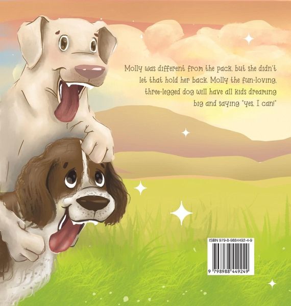 Molly was different from the pack, but she didn't let that hold her back. Molly the fun-loving, three-legged dog will have all kids dreaming big and saying "yes, I can!" This children's book uses dogs to teach valuable life lessons, and encourage kids with disabilities such as limb loss or limb difference to not let the naysayers hold them back from living their best life. Inside you will find bright and colorful illustrations, dog characters everyone will love, and fun rhyming verses. This kids book is ideal for kids dealing with limb loss, limb difference, or other disabilities, special education teachers, and dog loving-families.