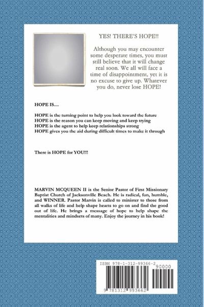 This book is designed to help anyone find the hope in their life. There maybe trouble, hard situations, and desperate times, but we must hope and trust that things will get better.
