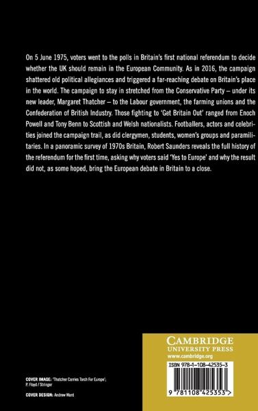 On 5 June 1975, voters went to the polls in Britain's first national referendum to decide whether the UK should remain in the European Community. As in 2016, the campaign shattered old political allegiances and triggered a far-reaching debate on Britain's place in the world. The campaign to stay in stretched from the Conservative Party - under its new leader, Margaret Thatcher - to the Labour government, the farming unions and the Confederation of British Industry. Those fighting to 'Get Britain Out' ranged from Enoch Powell and Tony Benn to Scottish and Welsh nationalists. Footballers, actors and celebrities joined the campaign trail, as did clergymen, students, women's groups and paramilitaries. In a panoramic survey of 1970s Britain, this volume offers the first modern history of the referendum, asking why voters said 'Yes to Europe' and why the result did not, as some hoped, bring the European debate in Britain to a close.