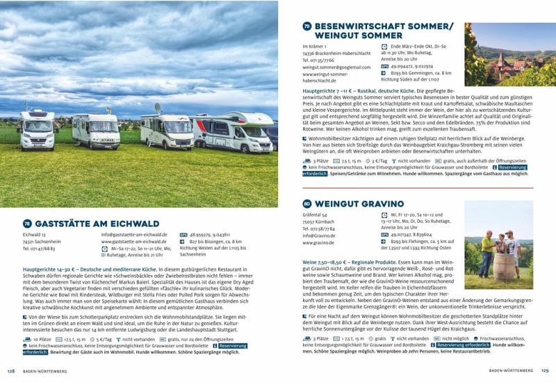 Der Kulinarische Campingführer präsentiert rund 150 Landgasthöfe, Weingüter und andere Gastgeber aus Deutschland und Österreich, die Wohnmobil-Reisende und Camper mit offenen Armen empfangen. Ihr besonderes Angebot: Sie dürfen eine Nacht auf dem Gelände in Ihrem Wohnmobil übernachten - kostenlos bei allen teilnehmenden Gasthöfen mit der Vignette zum Buch. Für den perfekten Kurztrip werden auch Campingplätze in der Umgebung, Sehenswürdigkeiten und Ausflüge vorgestellt, die schönsten Wohnmobil-Touren für Genießerinnen und Genießer runden das Gesamtpaket ab. In Zusammenarbeit mit PiNCAMP, dem Campingportal des ADAC.