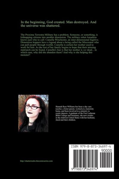 In the beginning, God created. Man destroyed. And the universe was shattered. The Proxima Terrestra Military has a problem. Someone, or something, is kidnapping citizens into another dimension. The military robot Amadeus knows just who to call: Camella Winchester, an inter-dimensional fugitive. Dimension hoppers have a legend about a being called the Miscreator who can pull people through worlds. Camella is certain her mother used to work for him. As the rest of her family begins to hope that their missing matriarch can be found, Camella's fear is that her mother is not dead... in which case, why did she abandon them? And why is she helping this monster?