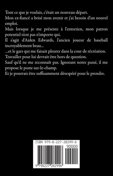 Tout ce que je voulais, c'était un nouveau départ. Mon ex-fiancé a brisé mon avenir et j'ai besoin d'un nouvel emploi. Mais lorsque je me présente à l'entretien, mon patron potentiel n'est pas n'importe qui. Il s'agit d'Aiden Edwards, l'ancien joueur de baseball incroyablement beau... ...et le gars qui me faisait pleurer dans la cour de récréation. Travailler pour lui devrait être hors de question. Sauf qu'il ne me reconnaît pas. Ignorant notre passé, il me propose le poste sur-le-champ. Et je pourrais être suffisamment désespéré pour le prendre.
