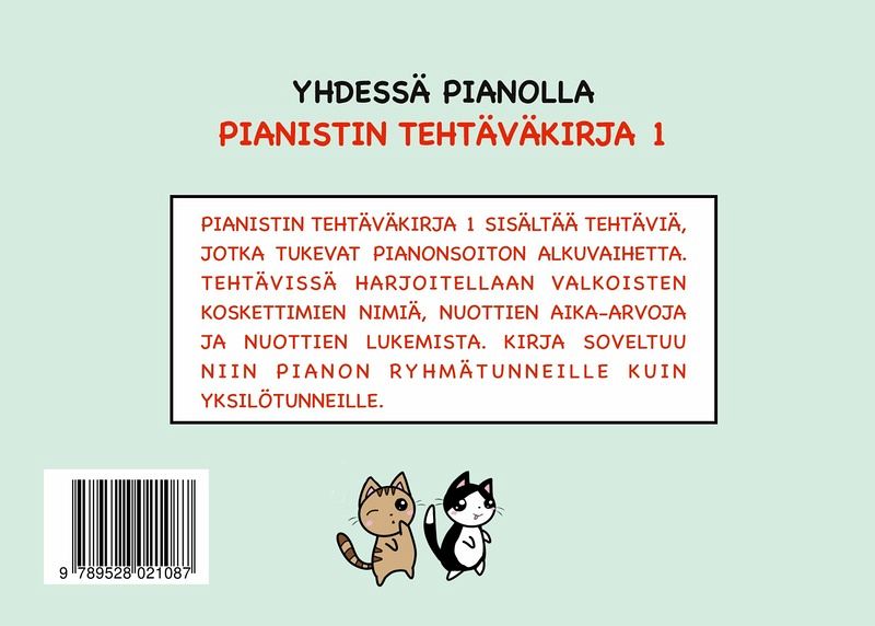 Pianistin tehtäväkirja 1 sisältää tehtäviä, jotka tukevat pianonsoiton alkuvaihetta. Tehtävissä harjoitellaan valkoisten koskettimien nimiä, nuottien aika-arvoja ja nuottien lukemista. Kirja soveltuu niin pianon ryhmätunneille kuin yksilötunneille.
