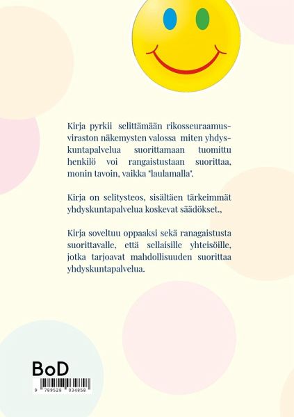 Kirja selittää rikosseuraamusviraston näkemysten valossa miten yhdyskuntapalvelukseen tuomittu henkilö voi rangaistuksensa suorittaa, vaikka "laulamalla".