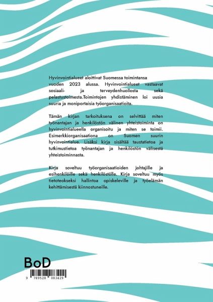 Hyvinvointialueet aloittivat Suomessa toimintansa vuoden 2023 alussa. Hyvinvointialueet vastaavat sosiaali- ja terveydenhuollosta sekä pelastustoimesta.Toimintojen yhdistäminen loi uusia suuria ja moniportaisia työorganisaatioita. Tämän kirjan tarkoituksena on selvittää miten työnantajan ja henkilöstön välinen yhteistoiminta on hyvinvointialueella organisoitu ja miten se toimii. Esimerkkiorganisaationa on Suomen suurin hyvinvointialue. Lisäksi kirja sisältää taustatietoa ja tutkimustietoa työnantajan ja henkilöstön välisestä yhteistoiminnasta. Kirja soveltuu työorganisaatioiden johtajille ja esihenkilöille sekä henkilöstölle. Kirja soveltuu myös tietoteokseksi hallintoa opiskeleville ja työelämän kehittämisestä kiinnostuneille.