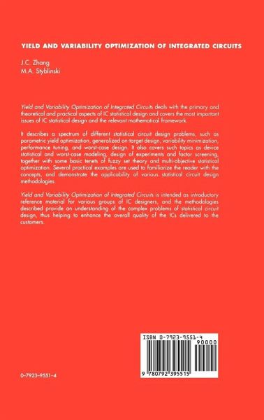 Traditionally, Computer Aided Design (CAD) tools have been used to create the nominal design of an integrated circuit (IC), such that the circuit nominal response meets the desired performance specifications. In reality, however, due to the disturbances ofthe IC manufacturing process, the actual performancesof the mass produced chips are different than those for the nominal design. Even if the manufacturing process were tightly controlled, so that there were little variations across the chips manufactured, the environmentalchanges (e. g. those oftemperature, supply voltages, etc. ) would alsomakethe circuit performances vary during the circuit life span. Process-related performance variations may lead to low manufacturing yield, and unacceptable product quality. For these reasons, statistical circuit design techniques are required to design the circuit parameters, taking the statistical process variations into account. This book deals with some theoretical and practical aspects of IC statistical design, and emphasizes how they differ from those for discrete circuits. It de scribes a spectrum of different statistical design problems, such as parametric yield optimization, generalized on-target design, variability minimization, per formance tunning, and worst-case design. The main emphasis of the presen tation is placed on the principles and practical solutions for performance vari ability minimization. It is hoped that the book may serve as an introductory reference material for various groups of IC designers, and the methodologies described will help them enhance the circuit quality and manufacturability. The book containsseven chapters.