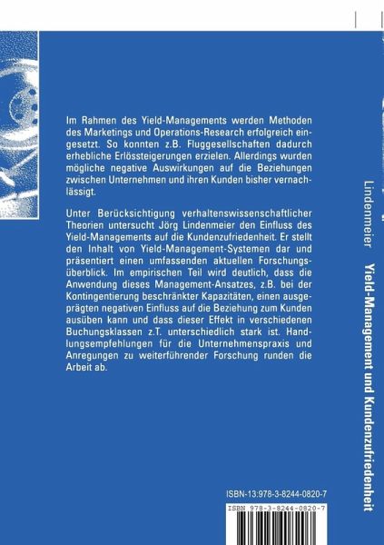 Jörg Lindenmeier untersucht die Auswirkungen des Yield-Managements auf die Kundenzufriedenheit. Er zeigt, dass die Anwendung der simultanen Steuerung von Preisen und Kapazitätsverfügbarkeiten die Beziehung zu Kunden primär negativ beeinflussen kann und dass dieser Effekt in verschiedenen Buchungsklassen unterschiedlich stark ist.