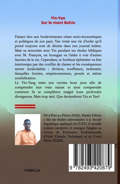 Yin-Yan sur le mont Bohio Faisant face aux bouleversantes crises socio-économiques et politiques de son pays, Yan vivait une vie d'enfer qu'il prend toujours soin de décrire dans son journal intime. Mais sa rencontre avec Yin pendant ses études bibliques avec M. François, un houngan va l'aider à voir d'autres facettes de la vie. Cependant, ce bonheur éphémère va être interrompu par des conflits de classes et les conséquences seront incalculables: division, souffrance, isolement, fiançailles forcées, emprisonnement, procès et même zombification. >Biographie de l'auteur Né à Port-au-Prince (Haïti), Stanley Decius a fait ses études universitaires à la faculté linguistique appliquée de l'UEH. Il travaille comme interprète et enseigne l'anglais au Centre de Formation Professionnelle d'Haïti (Canado Technique) et au Cours Privés EDME.