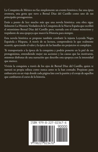 La Conquista de México no fue simplemente un evento histórico; fue una épica aventura, una gesta que tuvo a Bernal Díaz del Castillo como uno de sus principales protagonistas. Estás a punto de leer mucho más que una novela histórica: esta obra sigue fielmente La Historia Verdadera de la Conquista de la Nueva España que escribió el mismísimo Bernal Díaz del Castillo pero, narrada con el ritmo misterioso y trepidante de una epopeya que marcó la Historia para siempre. Esta novela histórica se propone también combatir la injusta Leyenda Negra Española e Hispana. A través de su lectura, comprenderás lo que realmente ocurrió, apreciando el valor y la épica de las batallas sin prejuicios ni complejos. Te transportarás a la época de la conquista y podrás ponerte en la piel de sus protagonistas, entendiendo mejor sus acciones y las causas que las motivaron, mientras disfrutas de una narración que describe esta epopeya con la intensidad que merece. Vivirás la conquista a través de los ojos de Bernal Díaz del Castillo, quien te narrará su propia odisea como nunca antes te la han contado. Prepárate para embarcarte en un viaje donde cada página late con la pasión y el coraje de aquellos que cambiaron el curso de la historia.