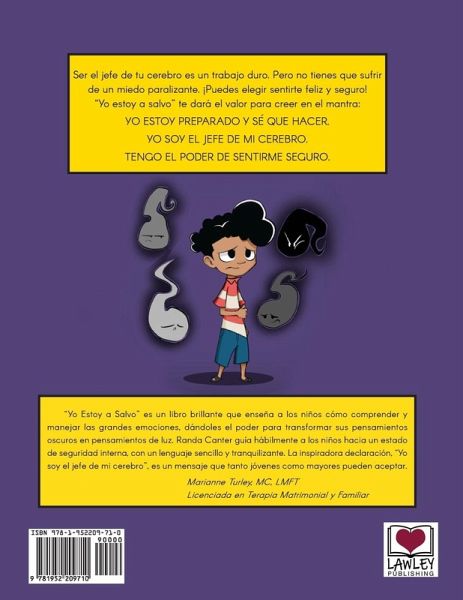 Ser el jefe de tu cerebro es un trabajo duro. Pero no tienes que sufrir de un miedo paralizante. !Puedes elegir sentirte feliz y seguro! "Yo estoy a salvo" te dará el valor para creer en el mantra: YO ESTOY PREPARADO Y SÉ QUE HACER. YO SOY EL JEFE DE MI CEREBRO. TENGO EL PODER DE SENTIRME SEGURO. "Yo estoy a salvo"es un libro brillante que enseña a los niños cómo comprender y manejar las grandes emociones, dándoles el poder para transformar sus pensamientos oscuros en pensamientos de luz. Randa Canter guía hábilmente a los niños hacia un estado de seguridad interna, con un lenguaje sencillo y tranquilizante . La inspiradora declaración, "Yo soy el jefe de mi cerebro", es un mensaje que tanto jóvenes como mayores pueden aceptar. Marianne Turley, MC, LMFT Licenciada en Terapia Matrimonial y Familiar