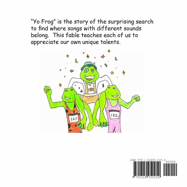 "Yo Frog" is the story of the surprising search to find where songs with different sounds belong. This fable teaches each of us to appreciate our own unique talents.