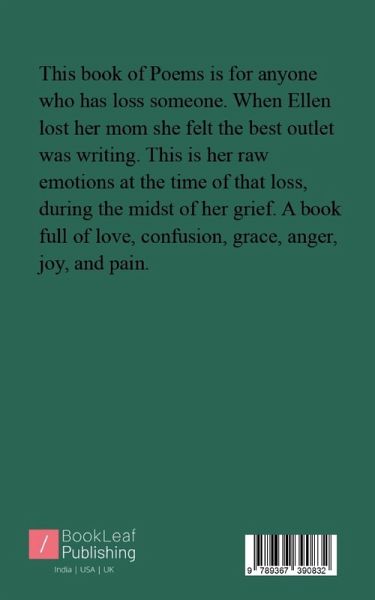 This book of Poems is for anyone who has loss someone. When Ellen lost her mom she felt the best outlet was writing. This is her raw emotions at the time of that loss, during the midst of her grief.