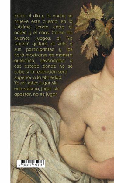 «Tres cosas son necesarias para la salvación del hombre: saber lo que debe creer; saber lo que debe querer; y saber lo que debe hacer». La sentencia de santo Tomás es clara, pero no simple; no resulta engañosa, pero, ¿y si uno no sabe qué creer, que querer o qué hacer? Entre el día y la noche se mueve este cuento, en la sublime senda entre el orden y el caos. Como los buenos juegos, el 'Yo Nunca' quitará el velo a sus participantes y los hará mostrarse de manera auténtica, llevándolos a ese estado donde no se sabe si la redención será superior a la ebriedad. Ya se sabe: jugar sin entusiasmo, jugar sin apostar, no es jugar.