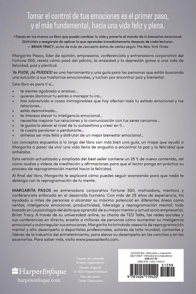 Margarita Pasos abre su corazón y comparte su experiencia de vida de hace más de 25 años. Este libro es una guía definitiva para comprender la función de nuestra mente y cómo los pensamientos, emociones, palabras y acciones marcan nuestro destino a nivel profesional, familiar y personal.