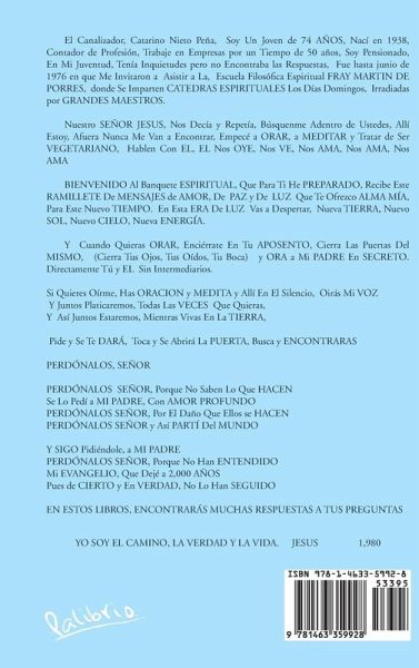 Sí, Aquel... el Que Vino a Enseñarnos a AMAR, a BENDECIR y a PERDONAR, Actos Que no Hemos Realizado. Su Evangelio no lo Hemos Practicado, Pero El, Sí, Cristo, Aún Sigue Esperando Que Nos Decidamos a Seguir Su Camino, Su Sendero. Nunca es Tarde, Hermano; Vamos a Empezar HOY, Porque el Mañana NO EXISTE. Te Bendigo en Su Nombre. "A Mi Esposa, Quien ha Sido Paciente y Cariñosa, y a Mis Hijos, que Han Hecho de Mi Hogar, un Vergel de Amor".