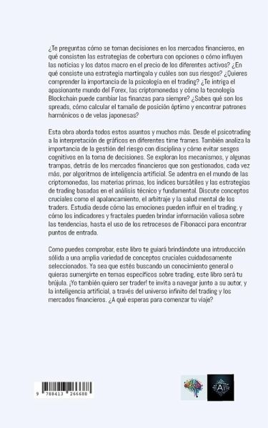 ¿Alguna vez has introducido una operación en el mercado y, al poco tiempo, el precio se ha girado en tu contra y te ha hecho perder dinero? O peor aún ¿has ido ganando con una operación, no has recogido beneficios, se ha dado la vuelta y se te ha puesto en pérdidas. . . otra vez? Eso es porque el mercado está repleto de engaños que buscan quitarte tu dinero. ¡Ojo! Quién te quiere vender un curso o un libro para explicarte una estrategia como la fórmula mágica de la rentabilidad y la consistencia, también te engaña, porque el mismo zapato no le sirve a todo el mundo. Si quieres encontrar una estrategia rentable y consistente debes formarte y conocerte a ti mismo. Conocer tu estilo de trading y aversión al riesgo es crucial, pero también has de conocer esos pequeños conceptos, que a veces pasan desapercibidos y que son como piezas de relojería, que deben encajar perfectamente para que funcione todo un sistema de trading. Esos conceptos son los recogidos en esta obra. En concreto 101 cuestiones básicas que debes conocer, sí o sí, para tener éxito como trader. Divididos en ocho grandes grupos, se discuten conceptos básicos: desde el psicotrading, al cálculo del tamaño óptimo de posición. También analiza la importancia de la gestión del riesgo, de la disciplina y cómo evitar sesgos cognitivos en la toma de decisiones. Se exploran los mecanismos, y algunas trampas, detrás de los mercados financieros que son gestionados, cada vez más, por algoritmos de inteligencia artificial. Se adentra en el mundo de las criptomonedas, las materias primas, los índices bursátiles y las estrategias de trading basadas en análisis técnico y fundamental. Resalta conceptos cruciales como el apalancamiento, el arbitraje y la salud mental de los traders. Estudia cómo las emociones pueden influir en el trading y cómo los indicadores y los fractales pueden brindar información valiosa sobre las tendencias. Es sin duda el libro que cualquier trader desearía tener en sus manos como guía básica de consulta para formarse de manera bien focalizada en el mundo del trading. ¿Tú también quieres ser trader? ¿Entonces, a qué esperas?