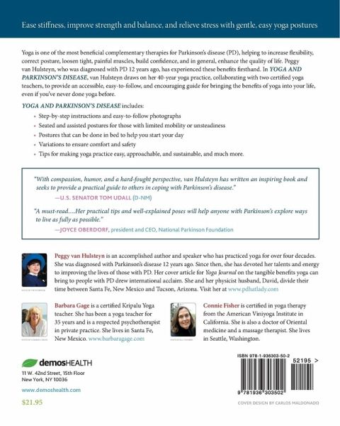 Ease stiffness, improve strength and balance, and relieve stress with gentle, easy yoga postures. Yoga is one of the most beneficial complementary therapies for Parkinson¿ås disease (PD), helping to increase flexibility, correct posture, loosen tight, painful muscles, build confidence, and in general, enhance the quality of life. Peggy van Hulsteyn, who was diagnosed with PD 12 years ago, has experienced these benefits firsthand. In Yoga and Parkinson's Disease, van Hulsteyn draws on her 40-year yoga practice, collaborating with two certified yoga teachers to provide an accessible, easy-to-follow, and encouraging guide for bringing the benefits of yoga into your life, even if you've never done yoga before. Yoga and Parkinson¿ås Disease includes: Step-by-step instructions and easy-to-follow photographs Seated and assisted postures for those with limited mobility and unsteadiness Postures that can be done in bed to help you start your day Variations to ensure comfort and safety Tips for making practice easy, approachable, and sustainable And much more"