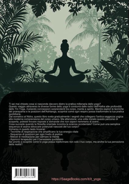 Benvenuti in un viaggio completo attraverso il mondo dello yoga, dalle sue radici antiche alle pratiche moderne.Questo libro offre una guida dettagliata che accompagna sia principianti che praticanti avanzati attraverso diversi stili di yoga, tra cui hatha yoga, yin yoga e ashtanga yoga. Ogni capitolo è strutturato per fornire una comprensione profonda delle tecniche, della filosofia e dei benefici di ogni approccio.Esplorerete:- I fondamenti della pratica yoga, incluse posture base e tecniche respiratorie- Le caratteristiche distintive dello yoga somatico e la sua connessione con la consapevolezza corporea- I principi dello yoga nidra per il rilassamento profondo e il recupero- Le sequenze dinamiche dell'ashtanga yoga per sviluppare forza e flessibilità- Tecniche di yoga aereo per una prospettiva unica della pratica- Elementi di yoga facciale per il benessere e il rilassamento del visoLa sezione sulla filosofia dello yoga offre approfondimenti sui principi fondamentali e sulla loro applicazione nella vita quotidiana. Le tecniche di yoga meditazione sono presentate in modo progressivo, permettendo di sviluppare una pratica personale significativa.Il testo include:- Istruzioni dettagliate per ogni postura- Sequenze progressive per tutti i livelli- Spiegazioni anatomiche- Guide per la respirazione consapevole- Tecniche di meditazioneQuesto libro rappresenta una risorsa preziosa per chiunque desideri approfondire la propria comprensione e pratica dello yoga, offrendo un percorso strutturato per l'evoluzione personale attraverso questa disciplina millenaria.Questo libro è stato creato utilizzando tecnologie innovative come l'Intelligenza Artificiale e strumenti sviluppati appositamente - ad esempio, nella ricerca di idee, nella ricerca, nella scrittura, nella redazione, nel controllo qualità e nella progettazione di illustrazioni decorative.In questo modo, vogliamo offrirvi un'esperienza di lettura particolarmente coerente, moderna e di qualità ancora superiore.