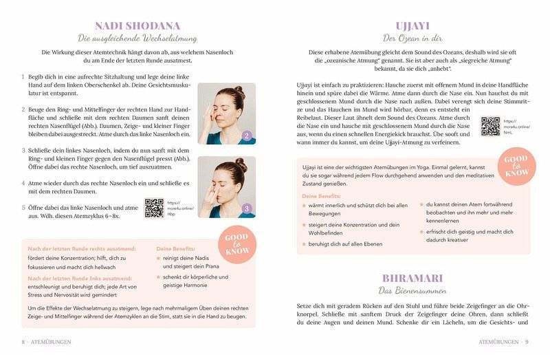 - Tolles Extra: Alle Flows und Atemübungen gibt es auch als Audio-Guide zum Anhören. Einfach per QR-Code oder Link streamen oder downloaden und los geht s.