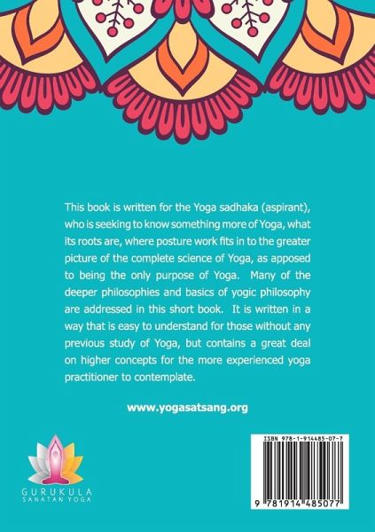 This book is written for the Yoga sadhaka (aspirant), who is seeking to know something more of Yoga, what its roots are, where posture work fits in to the greater picture of the complete science of Yoga, as opposed to being the only purpose of Yoga. Many of the deeper philosophies and basics of yogic philosophy are addressed in this short book. It is written in a way that is easy to understand for those without any previous study of Yoga, but contains higher concepts for the more experienced yoga practitioner to contemplate. This book has some simple but useful lessons on yogic lifestyle, which can help someone to transform their life if followed sincerely. The foundations of the yogi or yogini's spiritual life, moral and ethical considerations are addressed here, in addition to this, other forms of yoga are looked at briefly for the reader to gain some insight into the great world of yoga and how the worlds people have developed different strains of perhaps India's greatest gift, the origins of yoga. Hinduism in ancient times was very intertwined with Yogic life, as its path requires a disciplined pure lifestyle in its most refined form. When we study yoga at its roots, it is important to have some insights into ancient Hindu lifestyle which this book will include. One of the aims of this work is to give those who already practise Yoga to develop their awareness into the higher aspects of Yoga and refine their physical practice. Yoga is essentially a tool for self development and furthermore a path to unite with the 'one' that makes up this entire universe - Yoga means 'union'. I hope this book will allow you to reflect and think about your life, spiritual journey and Yoga as it has for us.