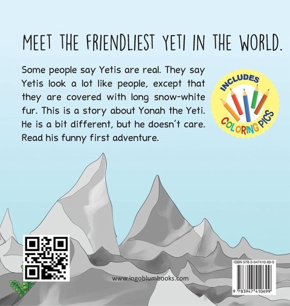 Meet The Friendliest Yeti In The World! Some people say Yetis are real. They say Yetis look a lot like people, except that they are covered with long snow-white fur. They say that Yetis live in the great snowy mountains between India and China. These mountains are called the Himalayas. This is a story about Yonah the Yeti - the friendliest Yeti in the world! He is a bit different, but he doesn't care. Read how Yonah and his best friend Mister Red Fox help a bird couple that broke up after an argument. After all, it's kindness and helpfulness that bring all the animals together again. How? Just read this funny book.