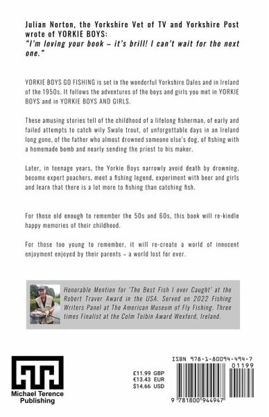 YORKIE BOYS GO FISHING is set in the wonderful Yorkshire Dales and in Ireland of the 1950s. It follows the adventures of the boys and girls you met in YORKIE BOYS and in YORKIE BOYS AND GIRLS. These amusing stories tell of the childhood of a lifelong fisherman, of early and failed attempts to catch wily Swale trout, of unforgettable days in an Ireland long gone, of the father who almost drowned someone else's dog, of fishing with a homemade bomb and nearly sending the priest to his maker. Later, in teenage years, the Yorkie Boys narrowly avoid death by drowning, become expert poachers, meet a fishing legend, experiment with beer and girls and learn that there is a lot more to fishing than catching fish. For those old enough to remember the 50s and 60s, this book will re-kindle happy memories of their childhood. For those too young to remember, it will re-create a world of innocent enjoyment enjoyed by their parents - a world lost for ever.