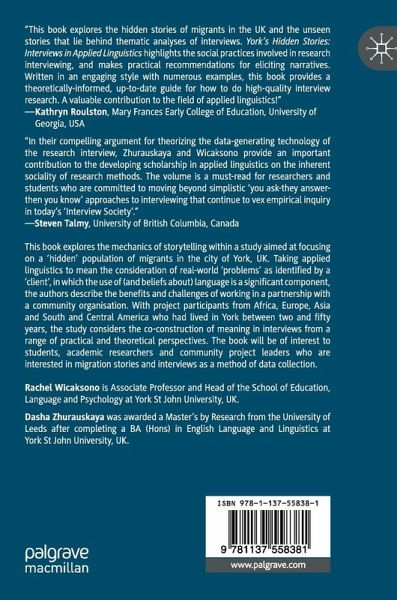 This book explores the mechanics of storytelling within a study aimed at focusing on a 'hidden' population of migrants in the city of York, UK. Taking applied linguistics to mean the consideration of real-world 'problems' as identified by a 'client', in which the use of (and beliefs about) language is a significant component, the authors describe the benefits and challenges of working in a partnership with a community organisation. With project participants from Africa, Europe, Asia and South and Central America who had lived in York between two and fifty years, the study considers the co-construction of meaning in interviews from a range of practical and theoretical perspectives. The book will be of interest to students, academic researchers and community project leaders who are interested in migration stories and interviews as a method of data collection.