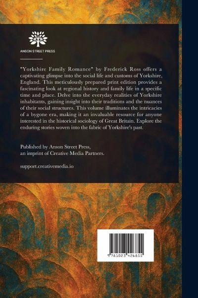 "Yorkshire Family Romance" by Frederick Ross offers a captivating glimpse into the social life and customs of Yorkshire, England. This meticulously prepared print edition provides a fascinating look at regional history and family life in a specific time and place. Delve into the everyday realities of Yorkshire inhabitants, gaining insight into their traditions and the nuances of their social structures. This volume illuminates the intricacies of a bygone era, making it an invaluable resource for anyone interested in the historical sociology of Great Britain. Explore the enduring stories woven into the fabric of Yorkshire's past. This work has been selected by scholars as being culturally important, and is part of the knowledge base of civilization as we know it. This work is in the public domain in the United States of America, and possibly other nations. Within the United States, you may freely copy and distribute this work, as no entity (individual or corporate) has a copyright on the body of the work. Scholars believe, and we concur, that this work is important enough to be preserved, reproduced, and made generally available to the public. We appreciate your support of the preservation process, and thank you for being an important part of keeping this knowledge alive and relevant.